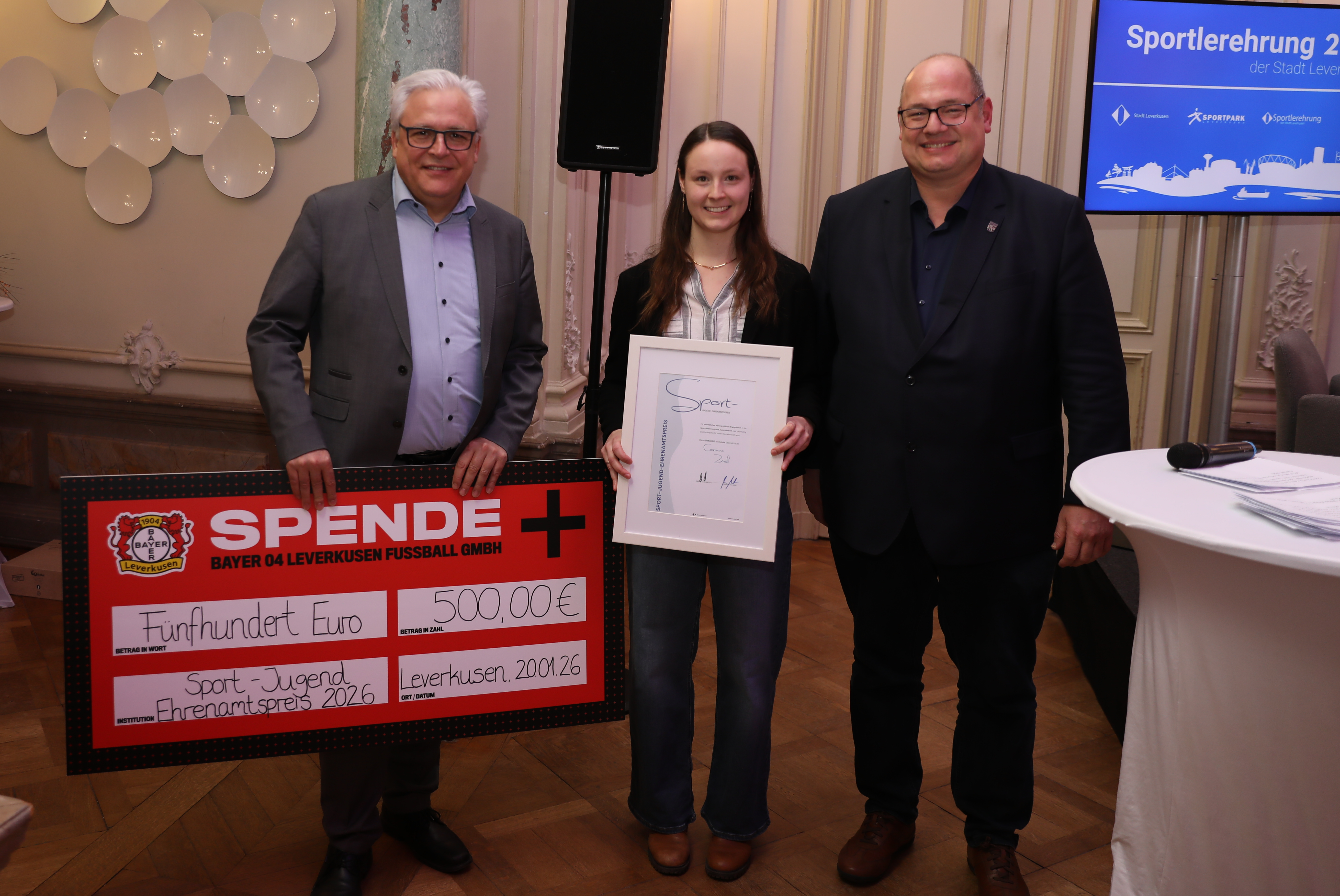 Am 20.01.2026 fand im Spiegelsaal des Schloss Morsbroich die Leverkusener Sportlerehrung statt. In diesem Rahmen wurde Corinna Zeeb, Jugendwartin unseres Vereins mit dem Sport-und Jugendehrenamtspreis 2026 ausgezeichnet und durfte sich in das goldene Buch der Stadt eintragen. Corinna beeindruckte die Jury durch ihr langjähriges Engagement in der Badmintonabteilung des SSV, sowie mit ihrer Arbeit als Jugendwartin, bei der sie unteranderem ein Schutzkonzept für Kinder- und Jugendliche gegen interpersonelle Gewalt entwickelte. Wir gratulieren Dir, liebe Corinna herzlich zu dieser tollen Auszeichnung und bedanken uns für dein tatkräftiges Engagement in unserem Verein.
